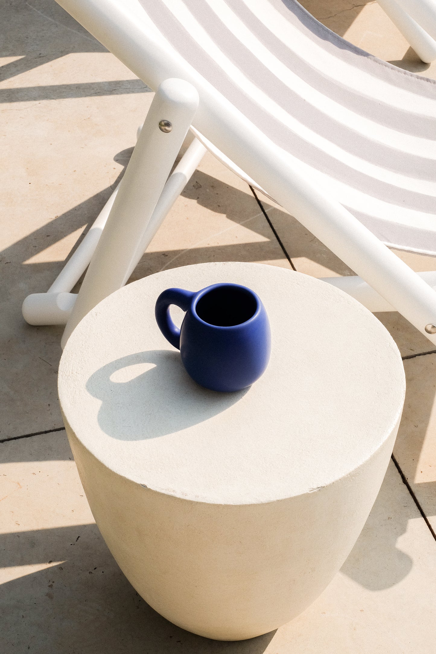 Caneca de cerâmica com pintura esmalte na azul klein.