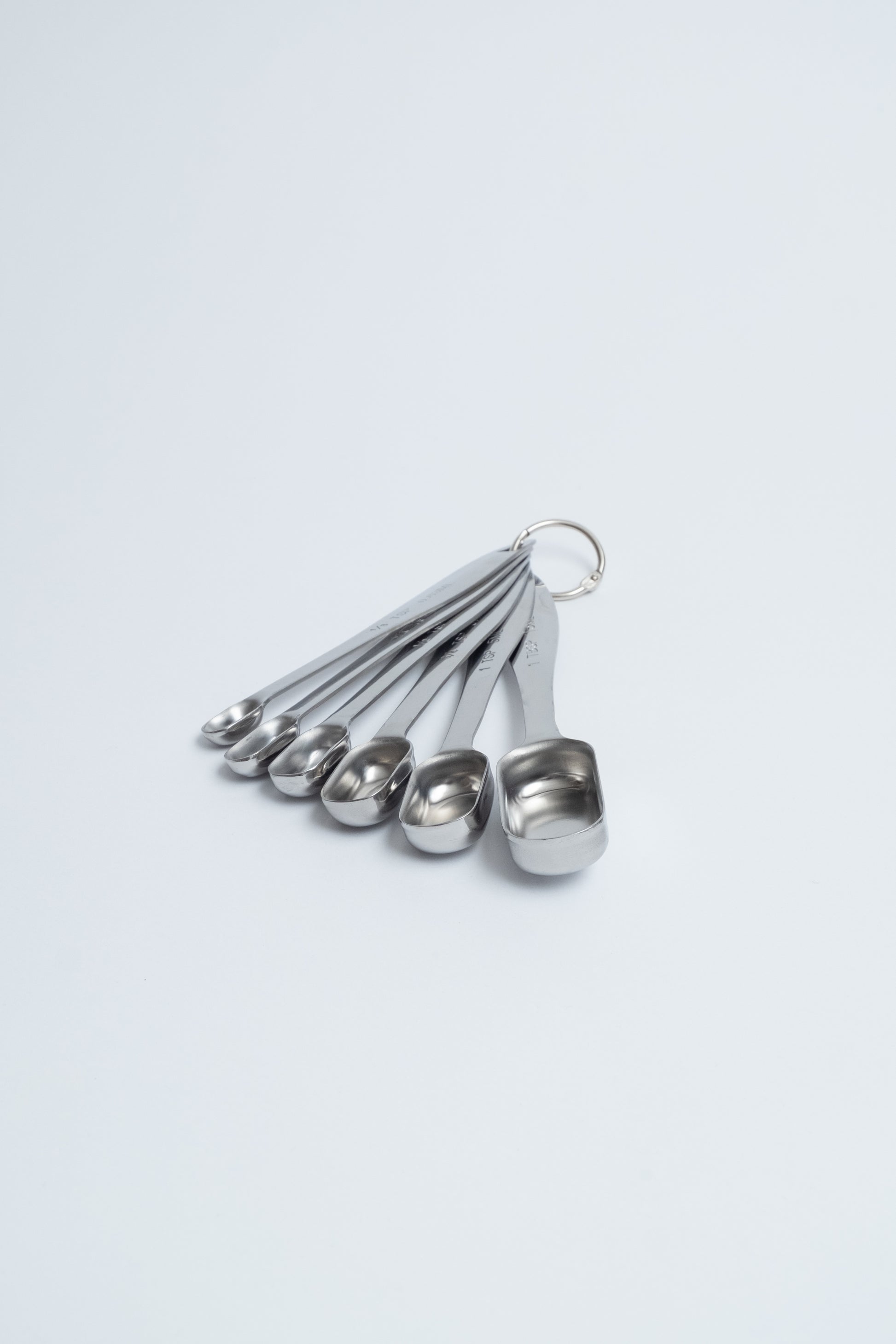 Jogo de 5 colheres medidoras de aço inoxidável.