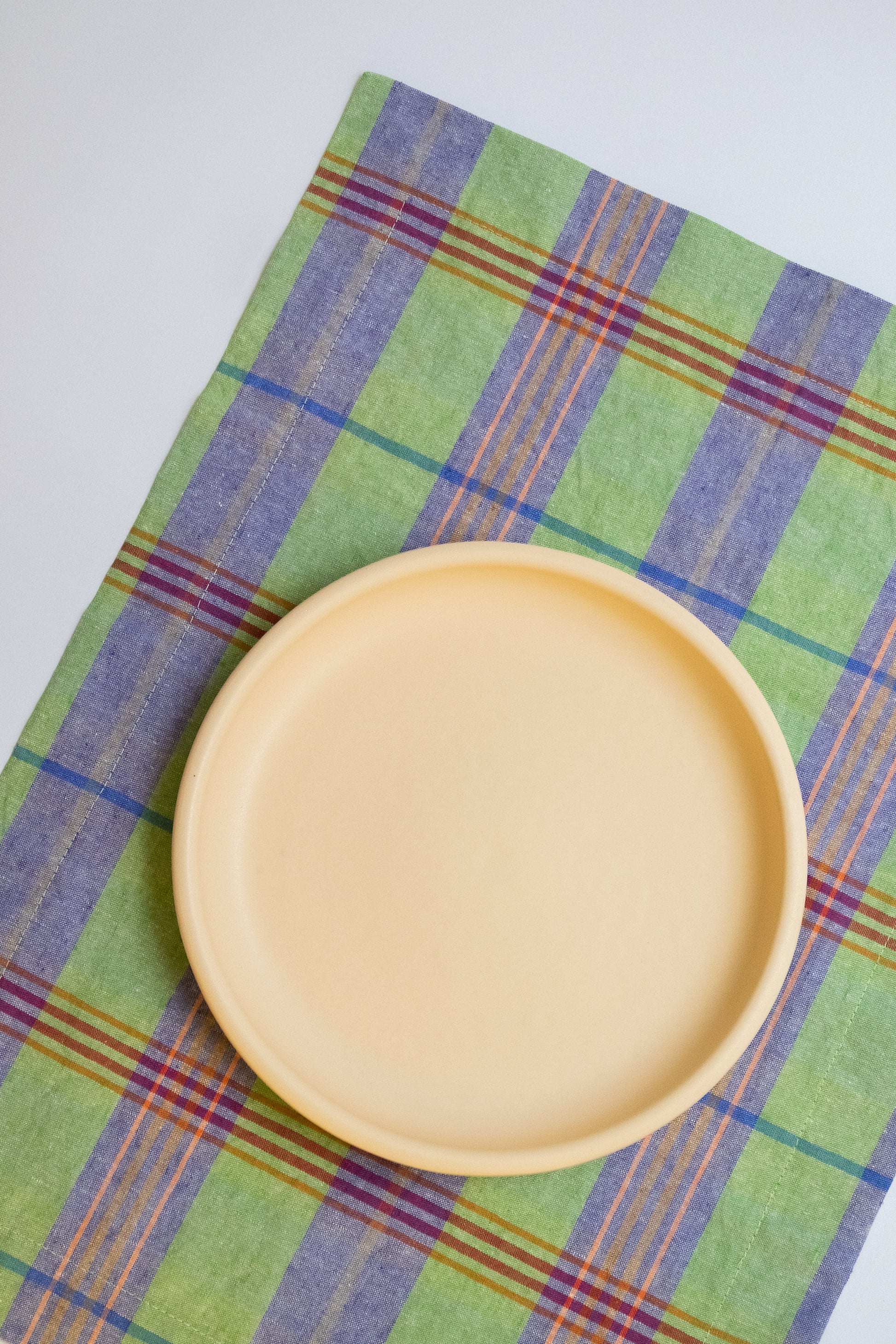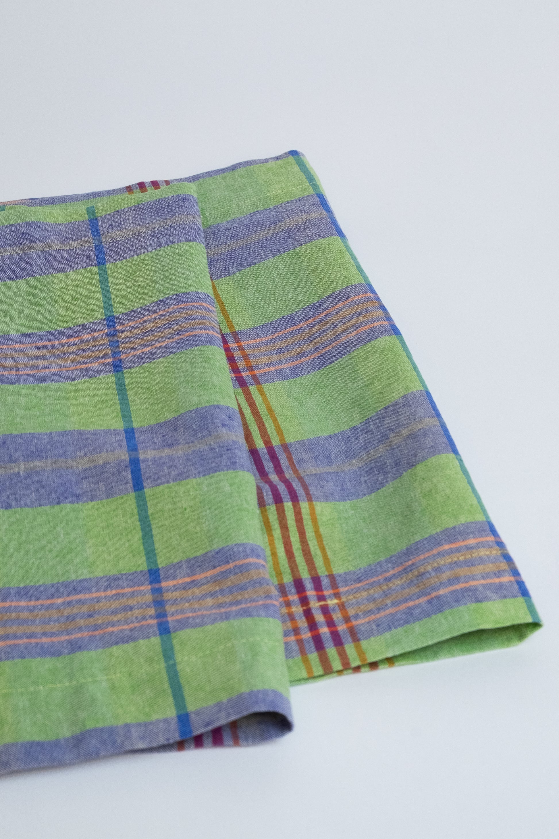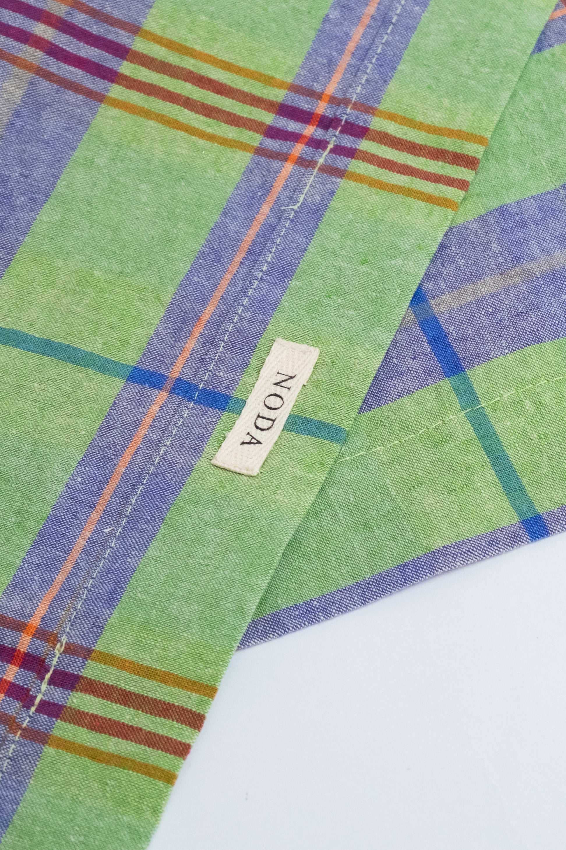 Par de jogo americano confeccionado em tecido xadrez pré-lavado, com composição de 45% algodão e 55% linho.