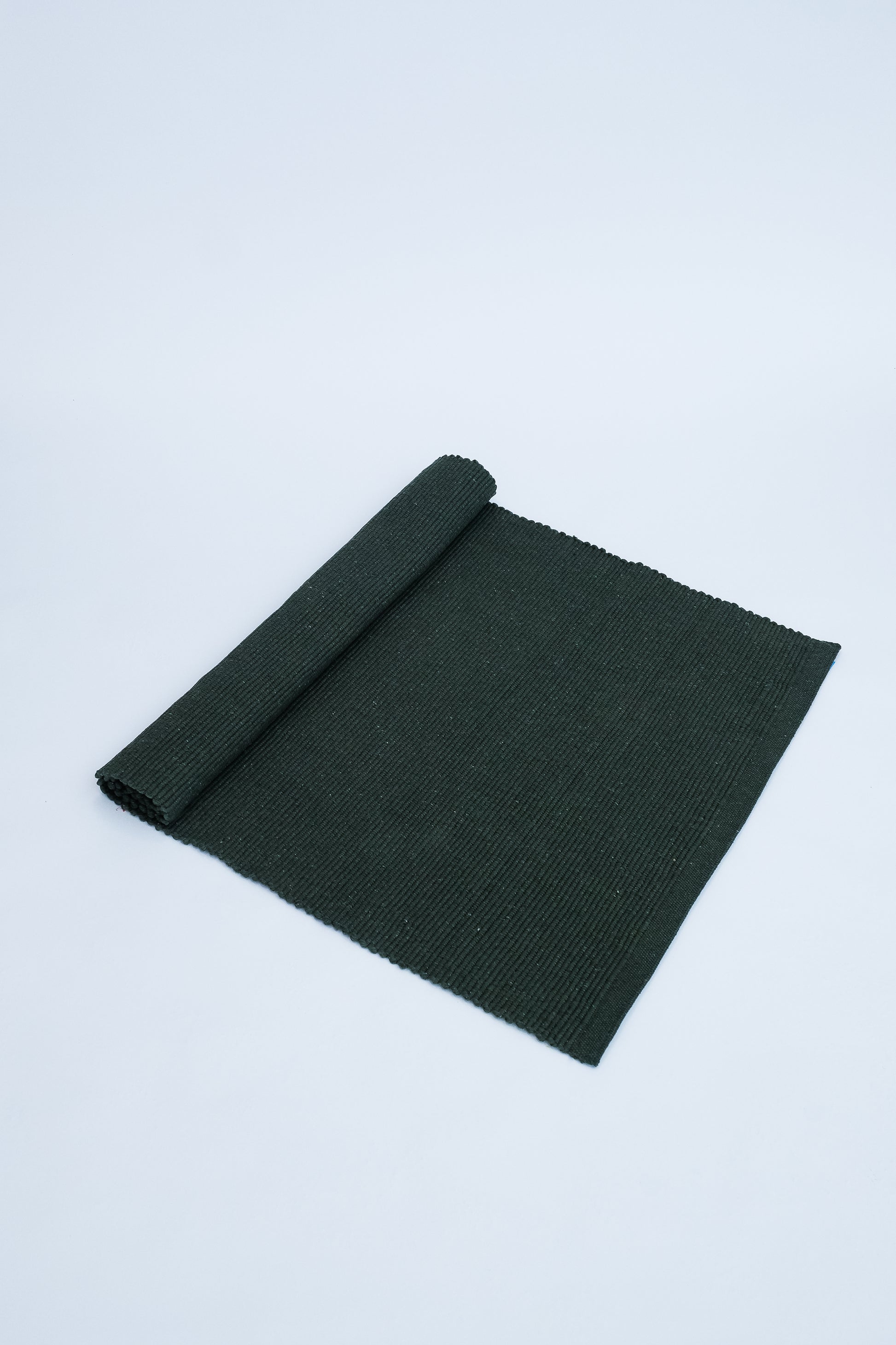 Tapete 100% algodão na cor verde, feito em tear manual em Pernambuco.